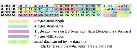 where the mean atom carries the reverse DNS domain (com.apple.iTunes) & the name atom carries the descriptor for the contents of the data atom.